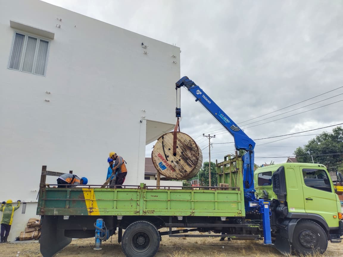 Proses penurunan tiang listrik dilakukan oleh tim teknis PLN bersama petugas lapangan menggunakan peralatan khusus untuk memastikan pekerjaan berjalan aman dan tertib. Penataan ini juga bertujuan mengurangi risiko gangguan jaringan akibat kondisi tiang listrik yang sebelumnya berada di area persawahan dan rawan tergenang air.