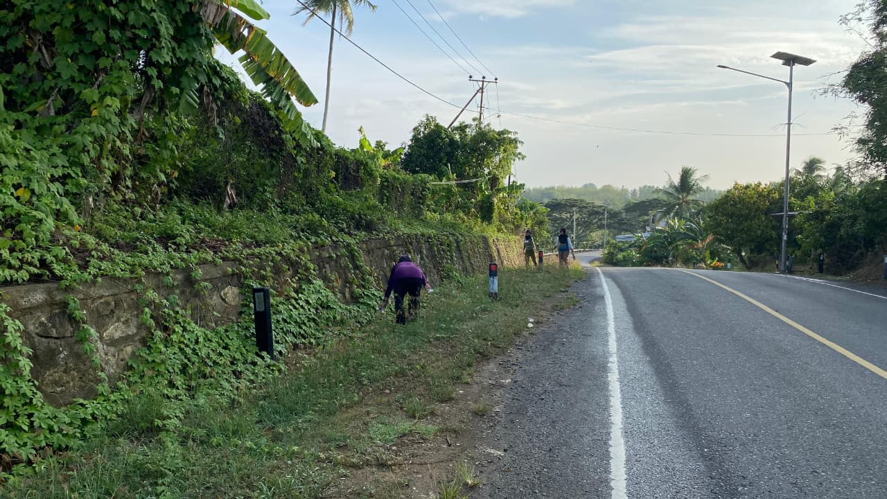 Kepala Desa Mario bersama staf desa laki-laki melakukan penyemprotan rumput di area poros jalan Desa Mario agar lingkungan terlihat lebih bersih dan tertata. Sementara itu, staf desa perempuan melakukan pembersihan sampah-sampah yang berada di pinggir jalan, sehingga kawasan jalan desa menjadi lebih bersih dan nyaman dilalui masyarakat.
