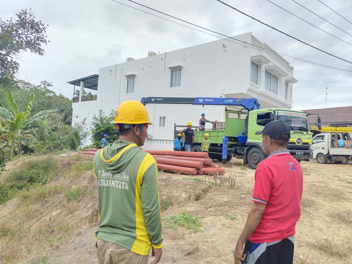 Proses penurunan tiang listrik dilakukan oleh tim teknis PLN bersama petugas lapangan menggunakan peralatan khusus untuk memastikan pekerjaan berjalan aman dan tertib. Penataan ini juga bertujuan mengurangi risiko gangguan jaringan akibat kondisi tiang listrik yang sebelumnya berada di area persawahan dan rawan tergenang air.