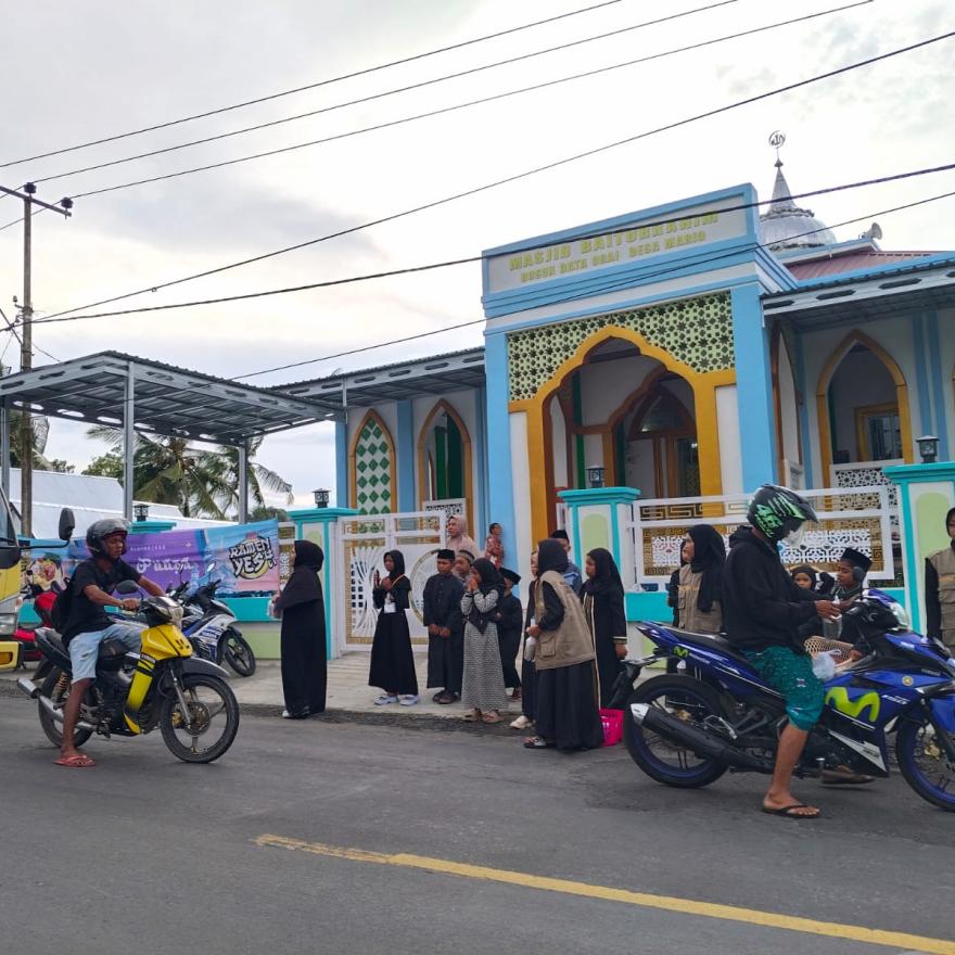 MARIO - Dusun Data Orai, Desa Mario – Remaja Masjid Baiturrahim bersama para peserta Pesantren Ramadhan 1447 H/2026 M melaksanakan kegiatan berbagi takjil kepada masyarakat dan pengguna jalan pada Kamis, 12 Maret 2026 di Dusun Data Orai, Desa Mario.