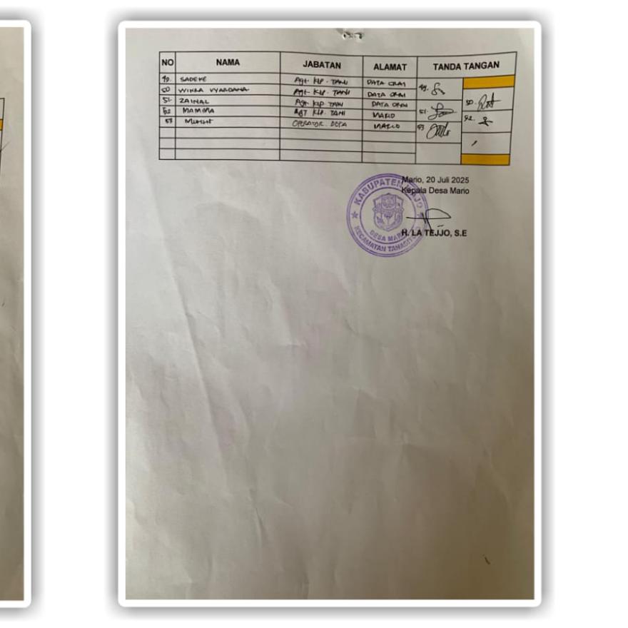Desa Mario 20 Juli 2025 - Pemerintah Desa Mario setiap tahun melaksanakan musyawarah tani 3 (tiga) kali setahun yaitu :